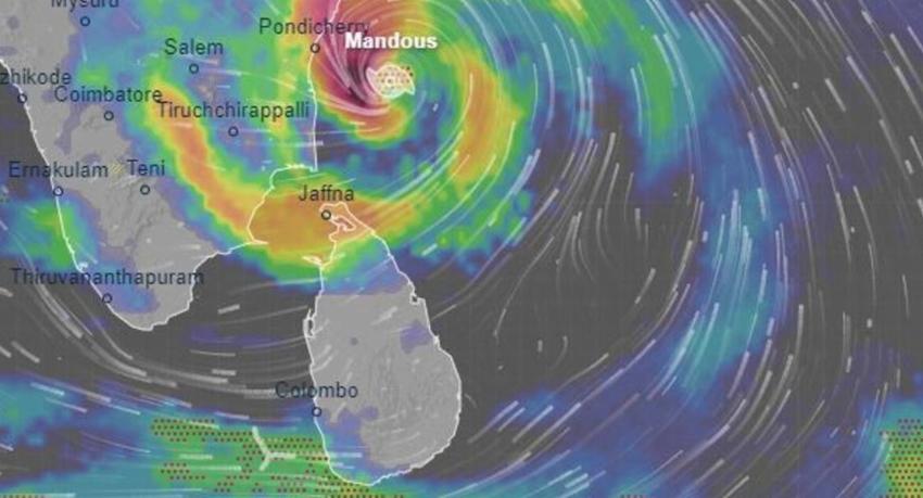 නිරිත දිග බෙංගාල බොක්ක මුහුදු ප්රදේශයේ ”මැන්ඩවුස් ” සුළි කුණාටුව ඊයේ සවස 2.30 පමණ වන විට යාපනයේ සිට කිලෝමීටර් 250ක් පමණ උතුරට බරව ඊසාන දෙසින් ස්ථානගතව පැවතුන බවද කාලගුණවිද්යා දෙපාර්තමේන්තුව සඳහන් කළ අතර එම පද්ධතිය වයඹ දෙසට ගමන් කර ඊයේ රාත්රිය වනවිට නිරිත දිග බෙංගාල බොක්ක හරහා උතුරු තමිල්නාඩු, පුදුචේරි සහ දකුණු ආන්ද්රා ප්රදේශ වෙරළ තීර හරහා ගමන් කරමින් පවතින බවද කාලගුණවිද්යා දෙපාර්තමේන්තුව වැඩිදුරටත් පැවසුවා.